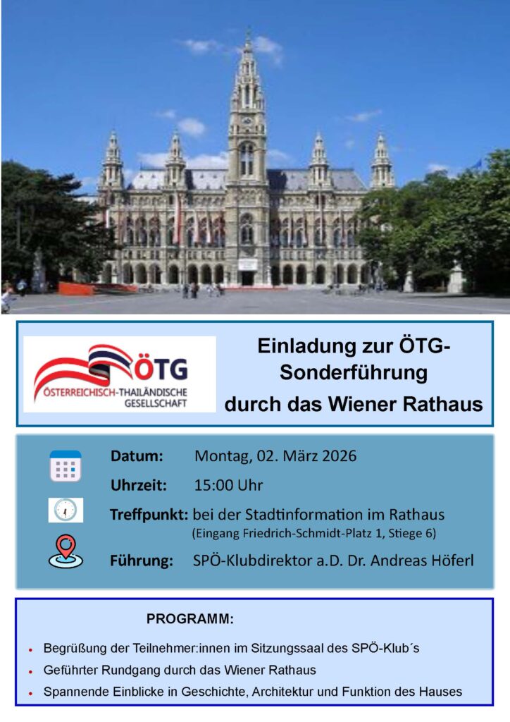 Einladung zur ÖTG-Sonderführung durch das Wiener Rathaus